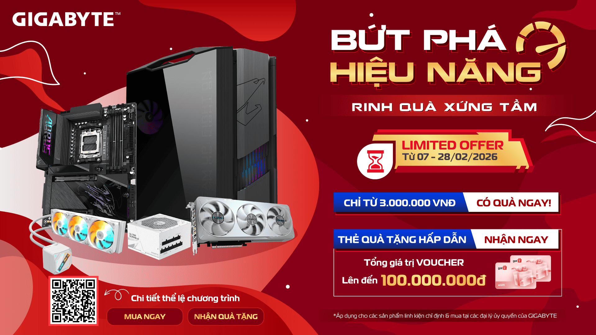 – Việc đăng ký và đổi quà phải được hoàn tất và phê duyệt bởi GIGABYTE trước và trong ngày 08/03/2026.